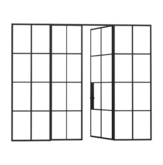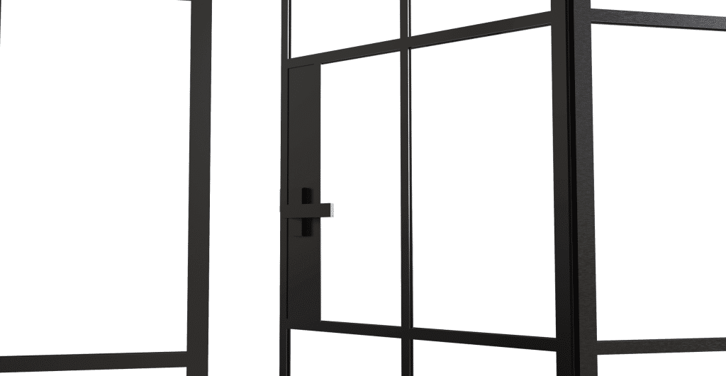 Las dimensiones máximas recomendables por hoja son de 900×2700 mm y puede ser lacada en cualquier ral o terminación. Cabe destacar el detalle ciego donde se encuentra la cerradura, manivela o tirador.